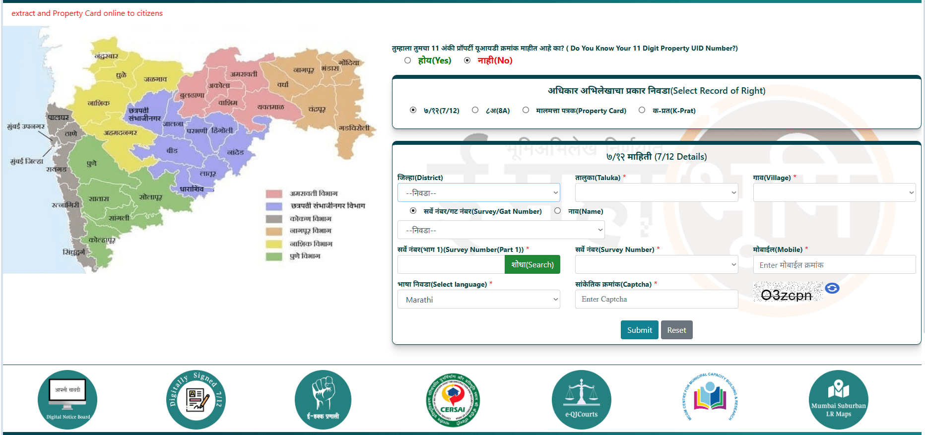 7/12 and Property Card Online. (Limited to Maharashtra)