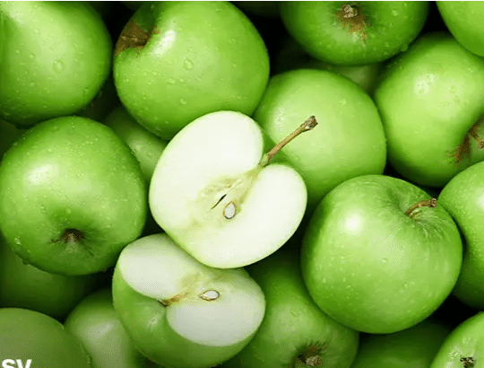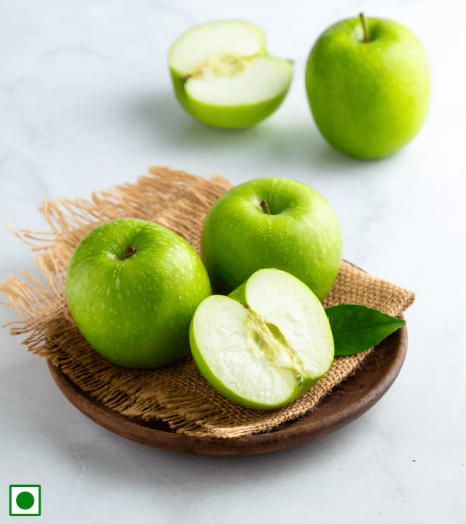 This fruit appears light green with tart, juicy and crisp flavours and hard skin with a long shelf-life as compared with other apple types. Green apples are considered a healthy fruit and are used in weight management regimens due to their low calorie content and high dietary potassium and fibre content